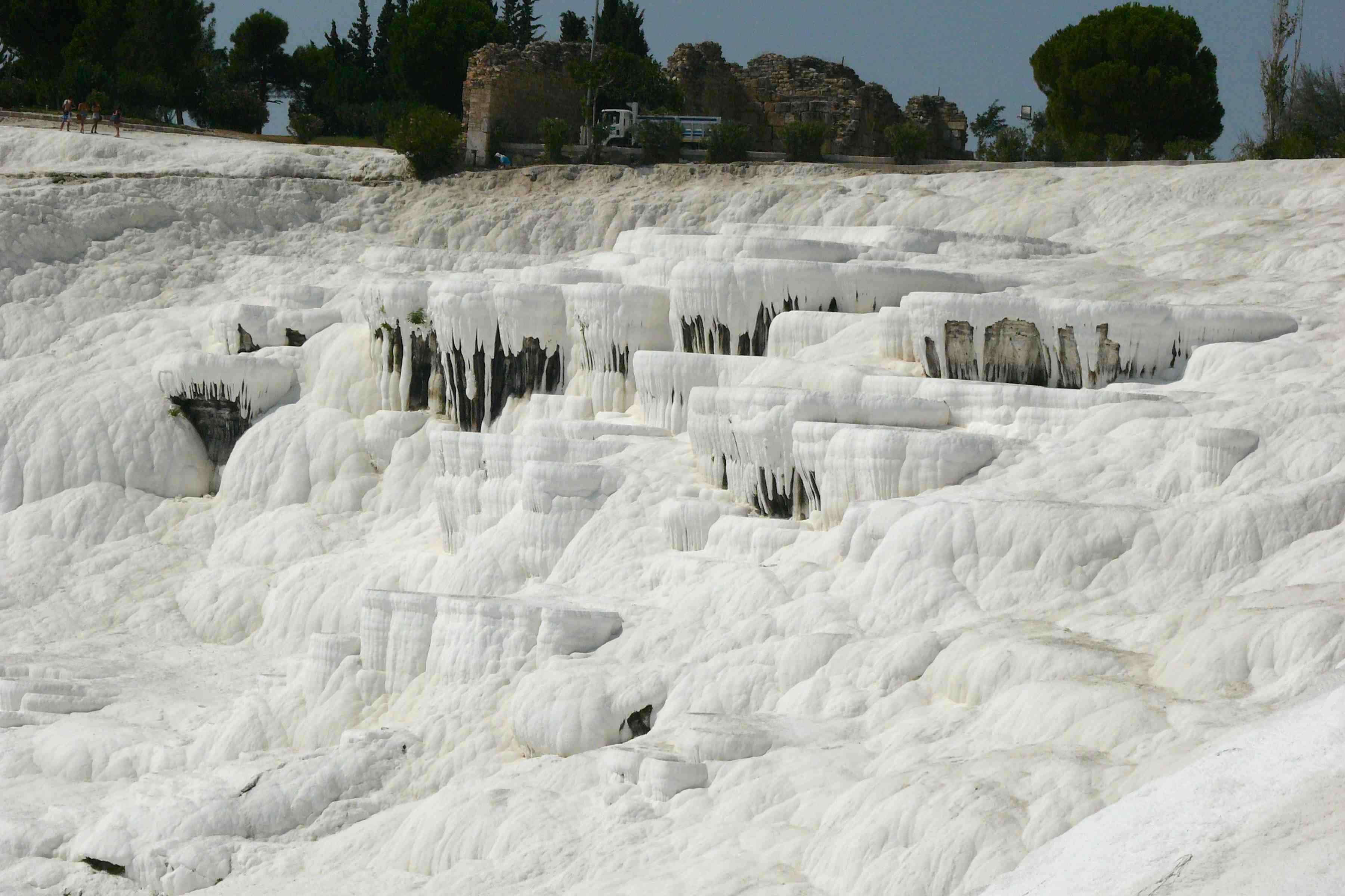The enormous and quite spectacular limestone formations and cascading pools of Pamukkale bring hundreds of thousands of people here to visit. Millions of years of water flow bringing calcium carbonate have produced this beautiful location.